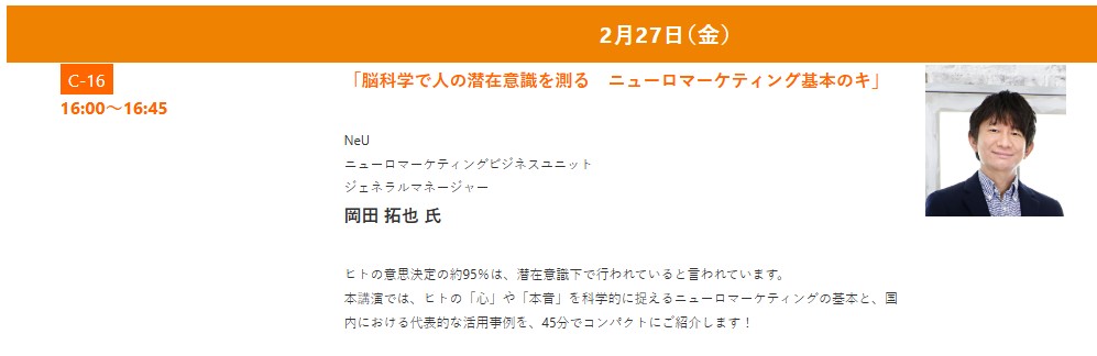・演題:「脳科学で人の潜在意識を測る ニューロマーケティング基本のキ」