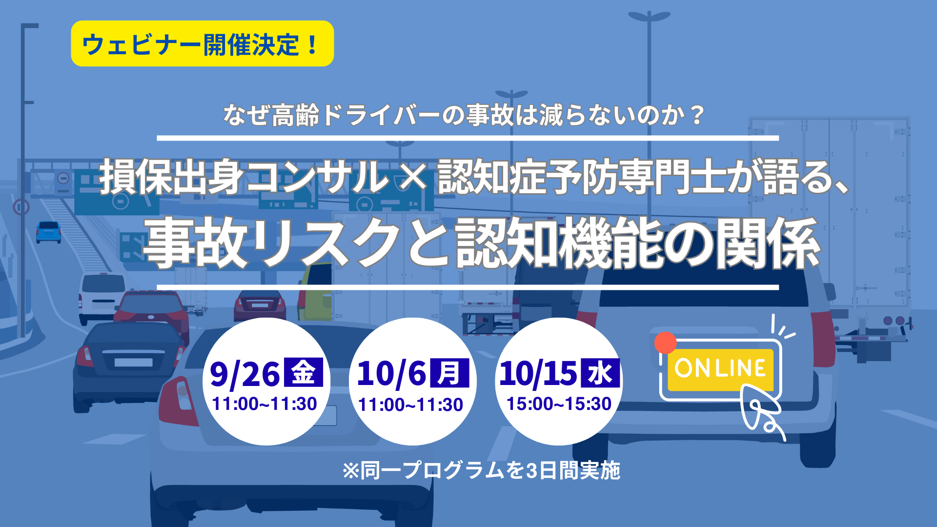 【ウェビナー開催】 なぜ高齢ドライバーの事故は減らないのか? 損保出身コンサル × 認知症予防専門士が語る、事故リスクと認知機能の関係