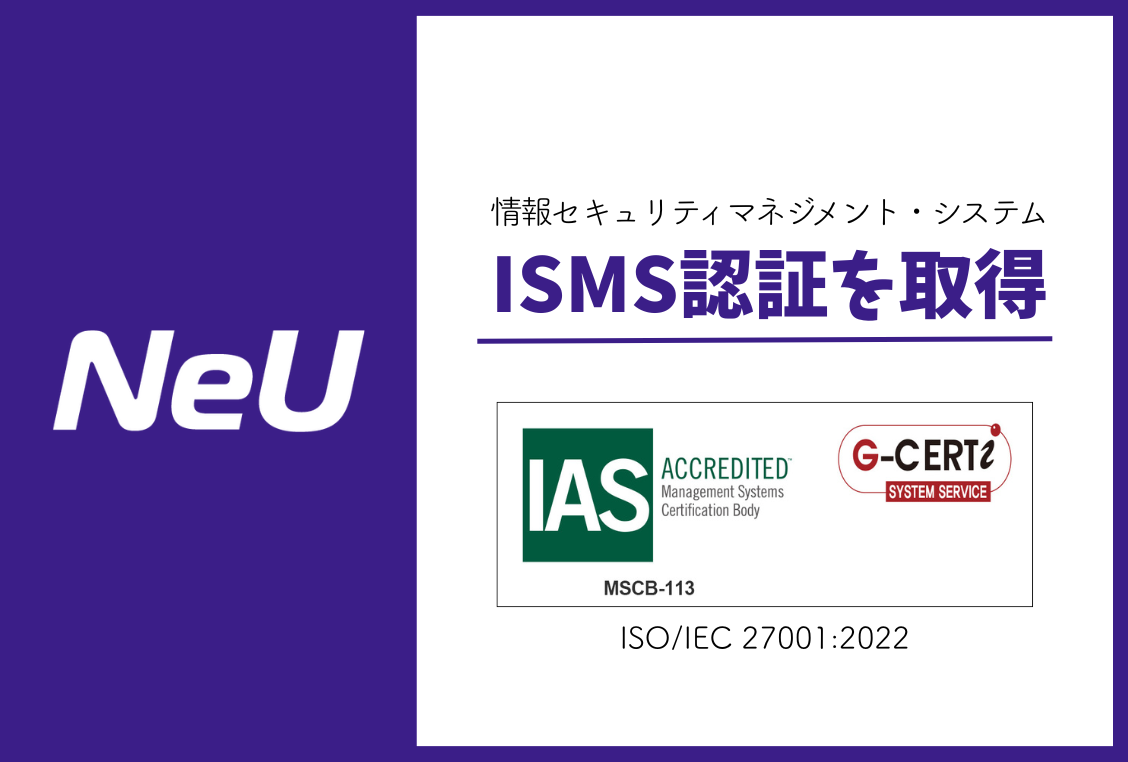 株式会社NeU(本社:東京都千代田区、代表取締役:禰寝義人、以下「NeU」)は、情報セキュリティマネジメントシステム(ISMS)の国際規格である「ISO/IEC 27001:2022」の認証を取得したことをお知らせいたします。